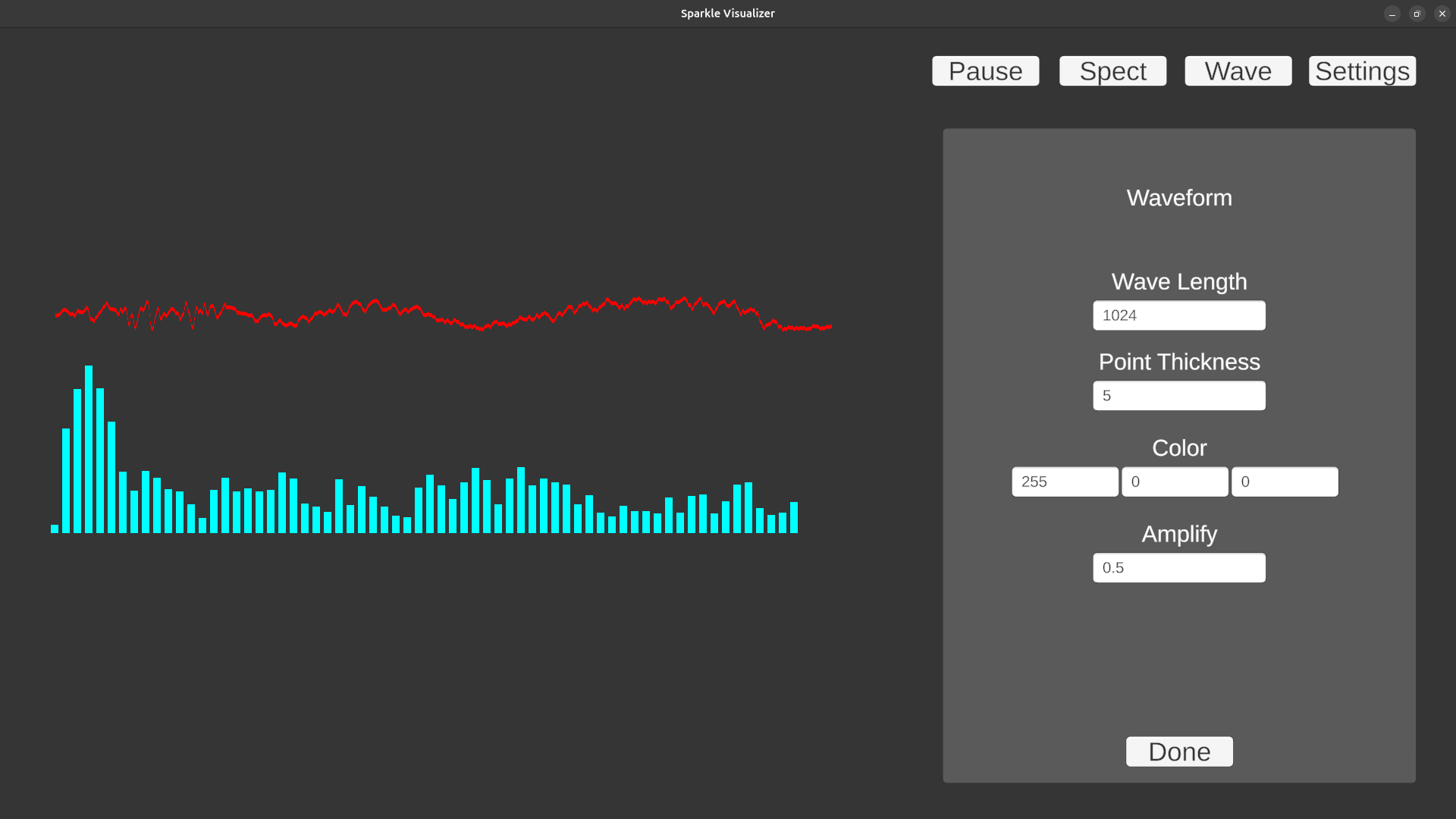 Sparkle is a configurable and customizable audio visualizer for Unity. That can display audio in the form of Spectrograms and Waveforms, form a file or microphone. I created this to be easily implmented into other unity projects the require a audio visualizer.